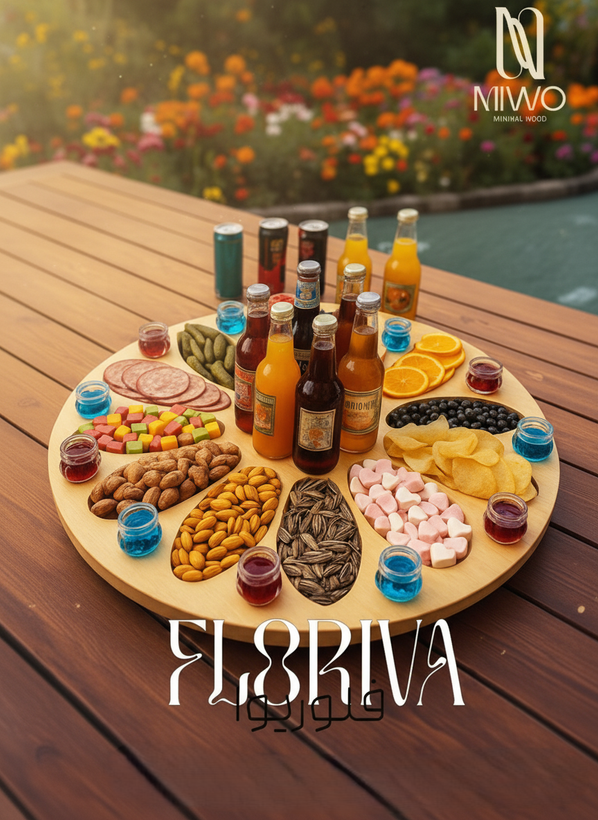 اگر به دنبال یک سینی مزه چوبی گردان، چندتکه، با ظرفیت بالا و طراحی لوکس هستید، فلوریوا بهترین گزینه برای میز پذیرایی شماست.